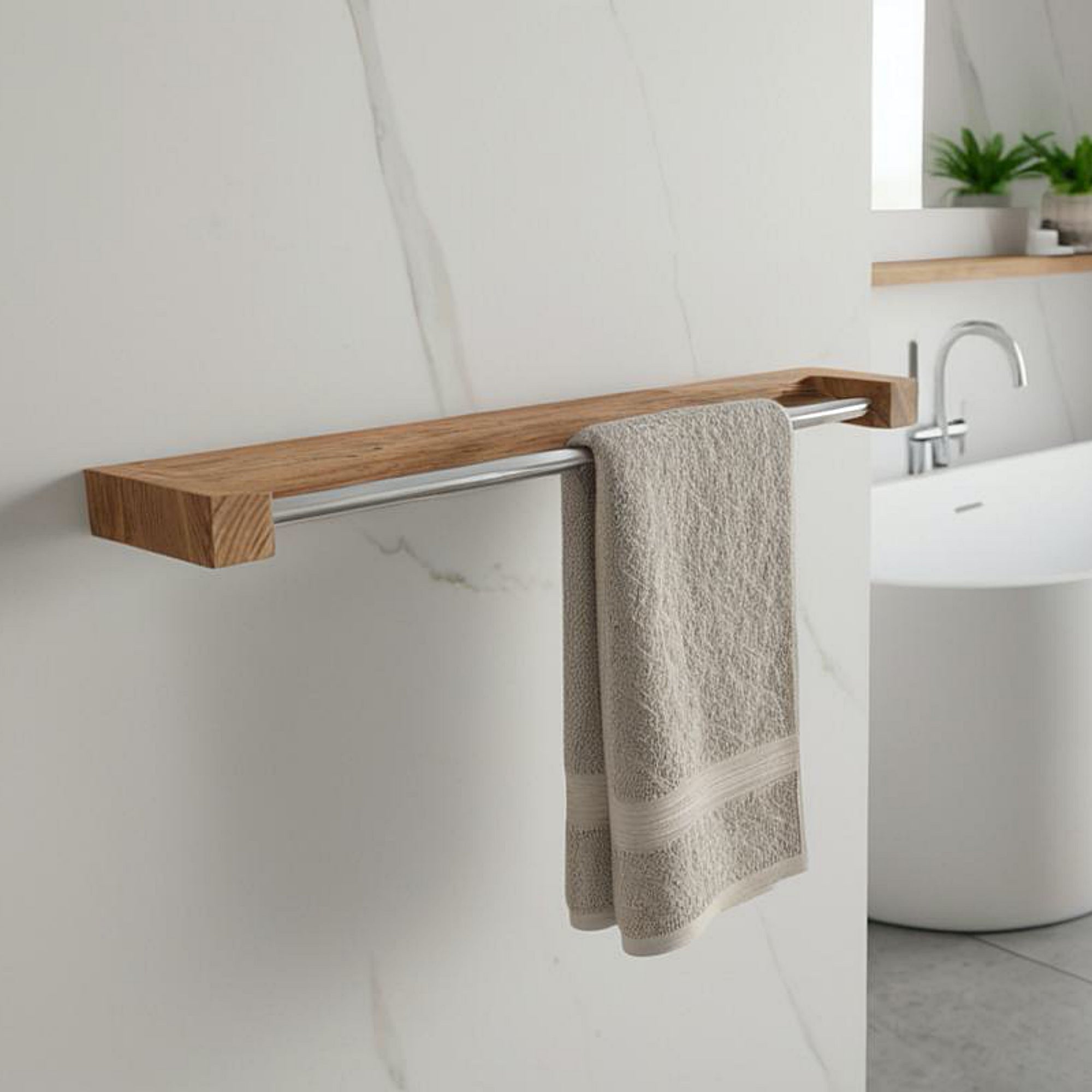 Houten handdoekhouder voor de badkamer – een combinatie van natuur en minimalistische stijl