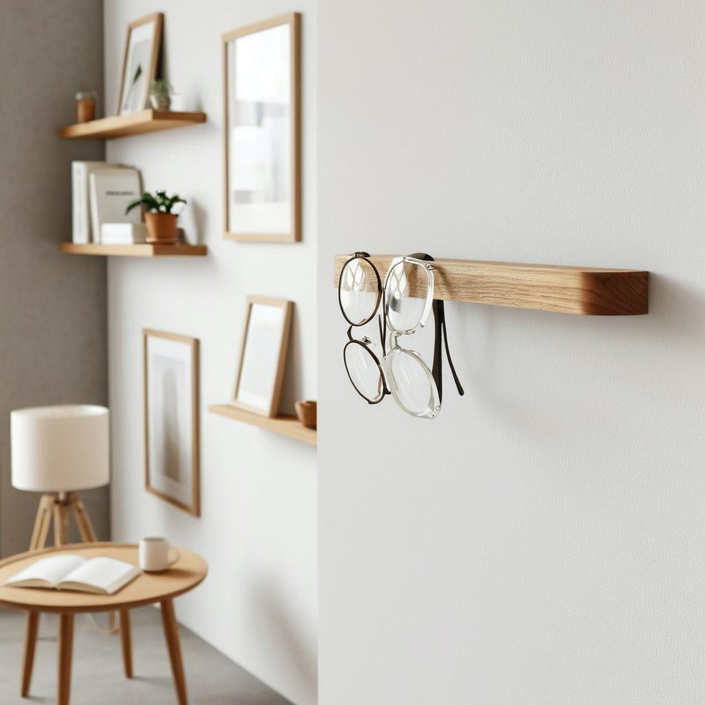 De houten brillenhouder van massief eikenhout is een eenvoudige en fraaie oplossing voor het probleem van rondslingerende brillen. Ontworpen in de geest van minimalisme en milieuvriendelijkheid, maakt het mogelijk om brillen op één vaste, altijd bereikbare plek te bewaren, terwijl het de natuurlijke sfeer van het interieur benadrukt.