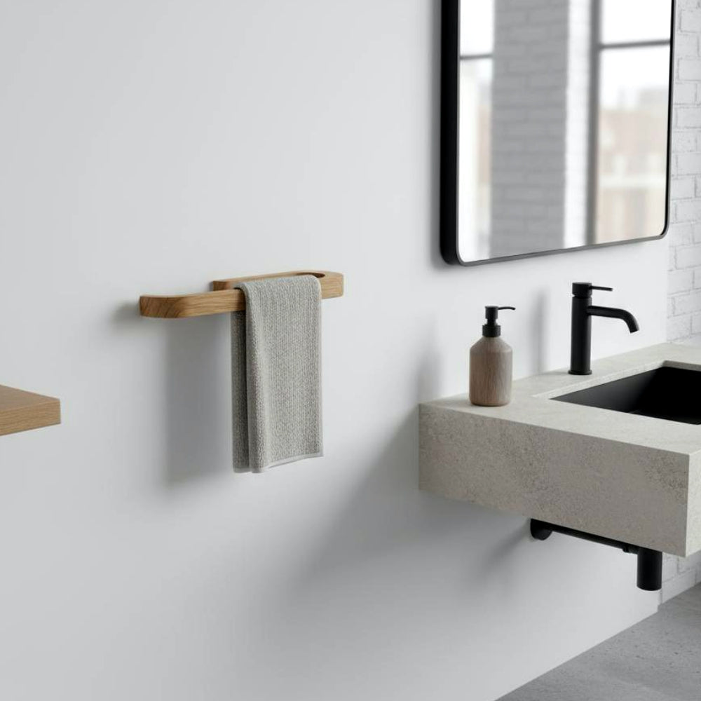 Eikenhouten kapstok die functionaliteit combineert met de natuurlijke schoonheid van hout Stel je een kleine badkamer voor, waar elk detail...
